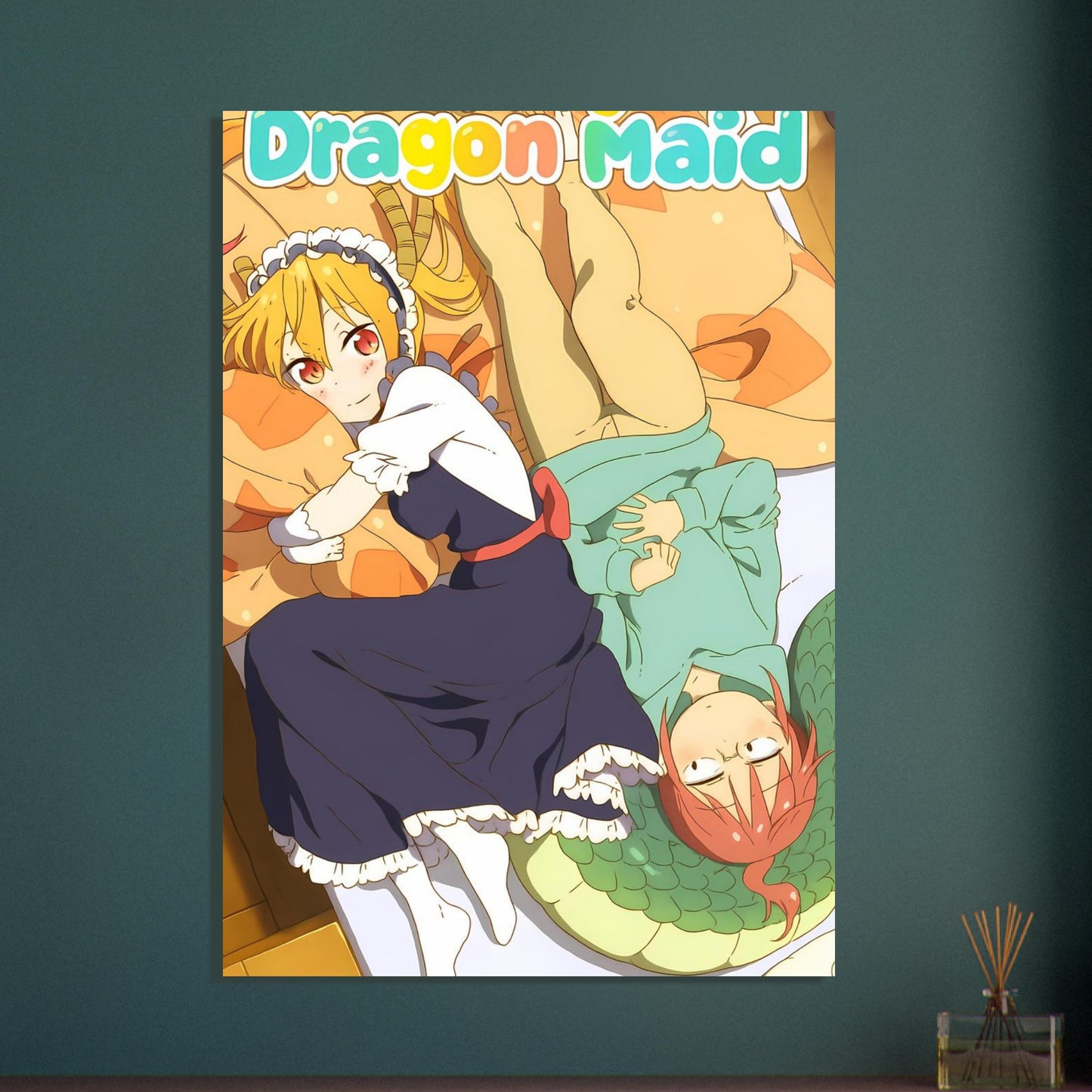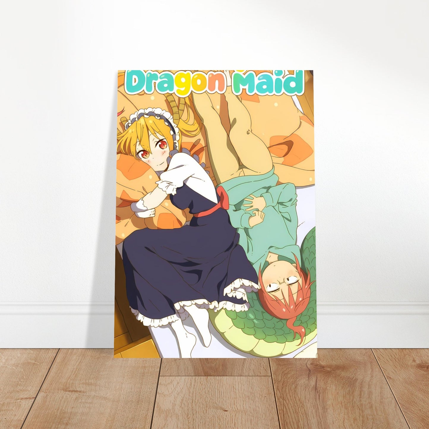 Vibrant anime artwork featuring a charming scene in soft, warm colors. The illustration showcases a playful composition with whimsical maid attire and dragon-themed fantasy elements. Perfect for fans of cute Japanese animation style and magical slice-of-life scenes
