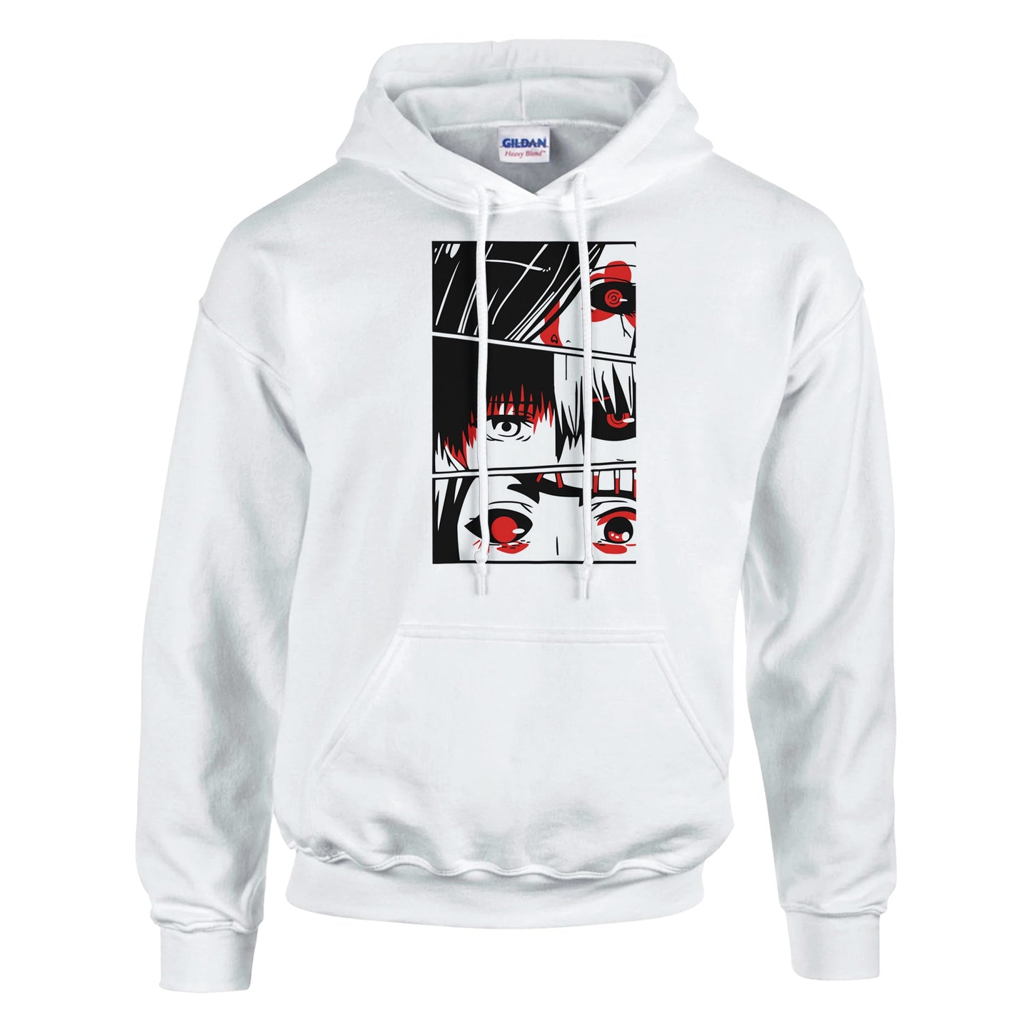 Striking manga-style artwork featuring dramatic eye close-ups in a bold red and black color scheme. This artistic comic panel design showcases intense emotional expressions through detailed eye illustrations, creating a powerful and dynamic aesthetic that captures the essence of Japanese comic art