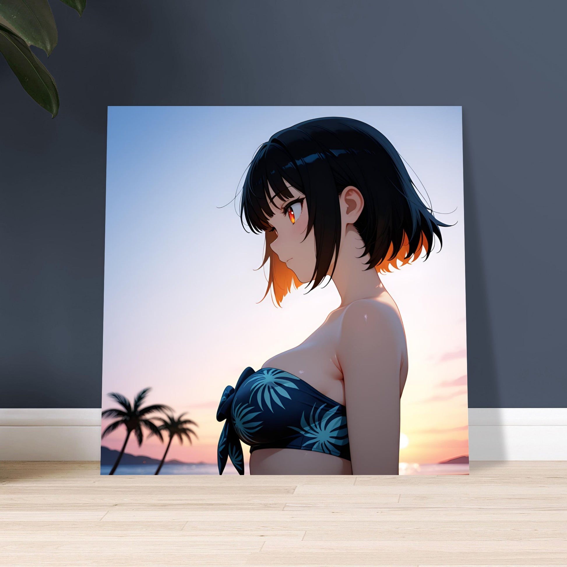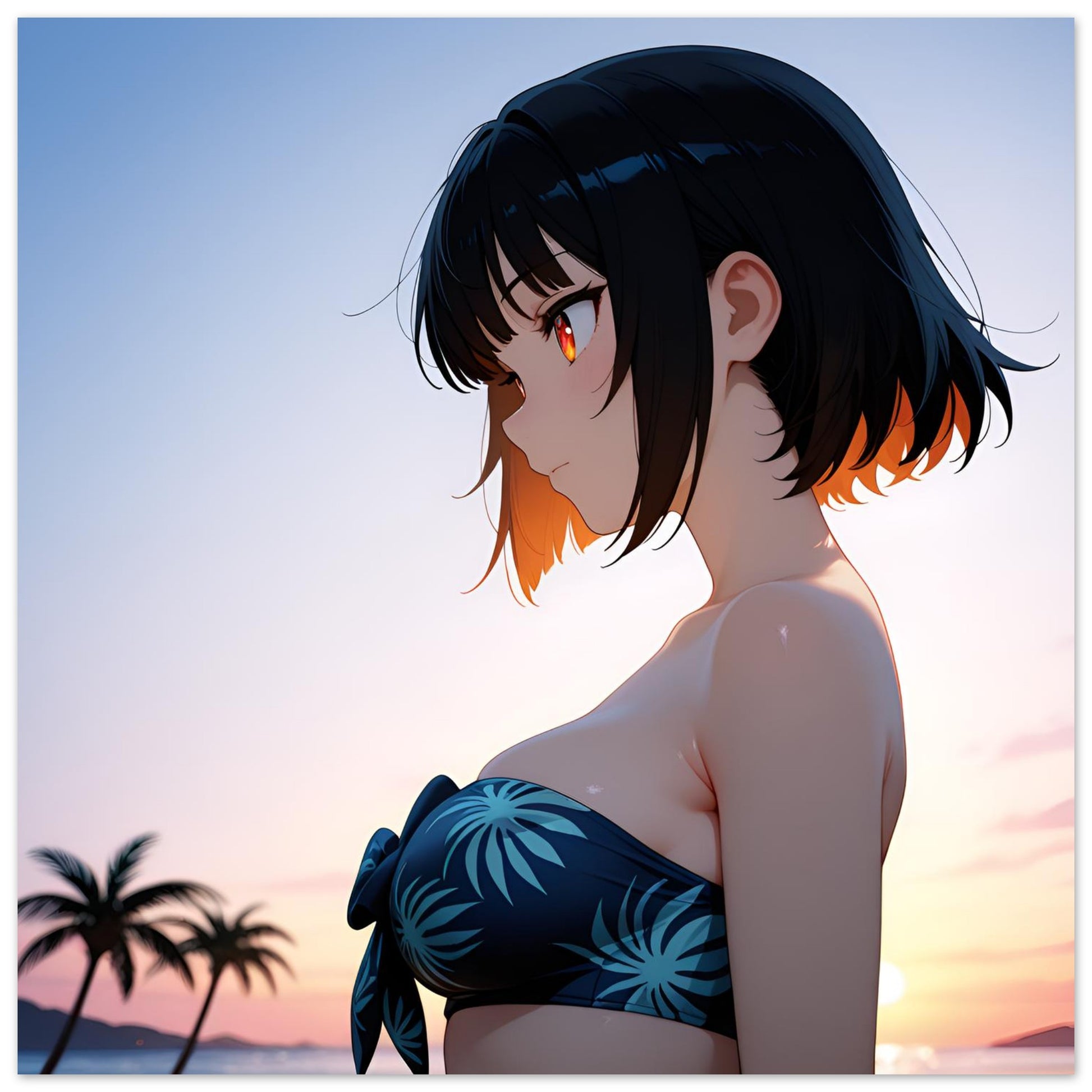 Sunset Beach Anime Girl Poster - Tropical Paradise Art